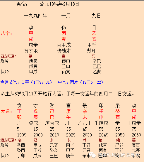 我尝试把出生年份改为 1994年,得八字如下: