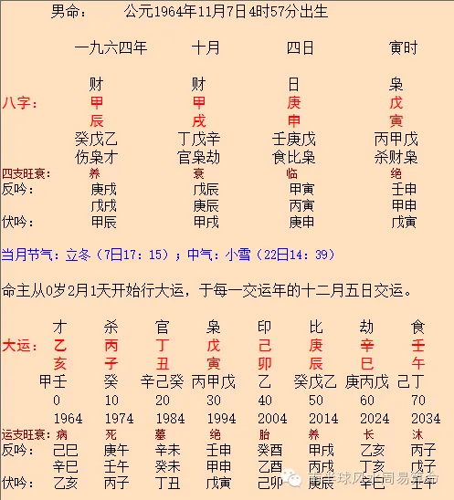 而朱晓驰出生于1964年11月7日,网上传他出生在寅时,得八字如下: