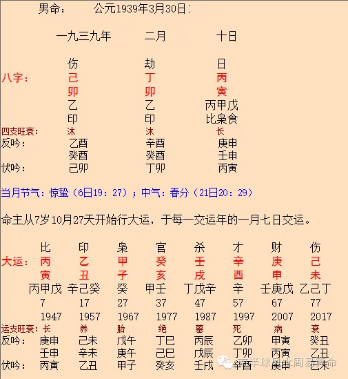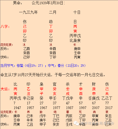 根据网上资料,吴建民出生于1939年3月30日,时辰我们不知道,排八字如下: