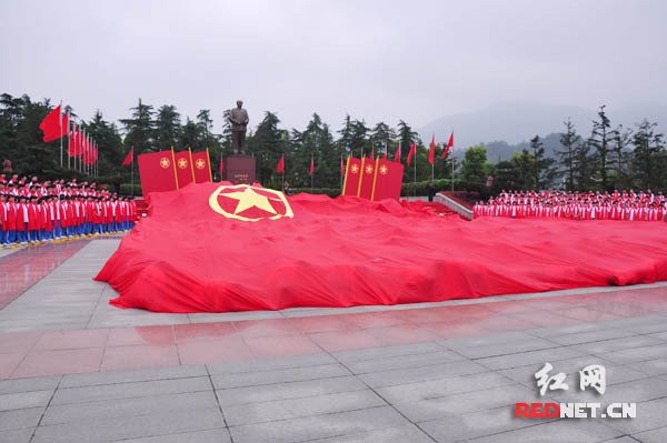 十、百年奇景——当地导游都会跟你说一个有关毛泽东铜像的有趣传说。毛泽东铜像到达韶山那天,正是寒冬季节,映山红盛开在覆盖白雪的漫山遍野,红红的仿佛朝霞,韶山的映山红又名红杜鹃,一般在春天盛开,在这个季节盛开确实从没有过的。更为神奇的是:“在毛泽东铜像揭幕的时候,只见天空一边是金光灿烂的太阳,一边是圆圆的银色的月亮,竟然出现了日月同辉、普照天下的奇观。”