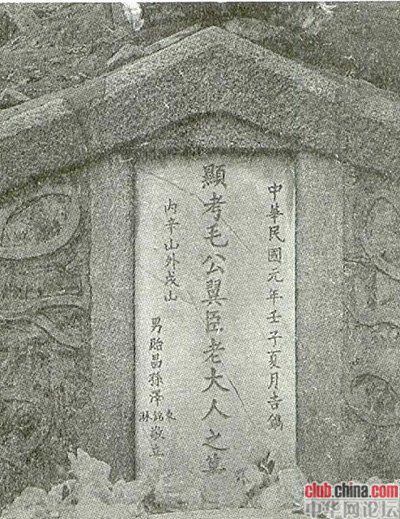 毛德臣暗喜,因为他比毛翼臣要年长5岁,但想不到后来毛翼臣竟然先逝世,终年只有58岁。哥哥毛德臣万万没有想到小自己好几岁的弟弟竟然会这么早就死在自已前头。这是机遇巧合还是天注命数呢?毛翼臣是1904年11月病逝的,死在“坏时刻”, “风水宝地的下葬,必须选个良辰吉日,毛家于是找风水先生择定安葬的吉日良辰。风水先生讲不能立即下葬,风水先生竟然择的是八年之后的八月十五日(中秋节)的晚上月亮当头正圆时的子时子刻下葬,而在中国农村,一般人家是不会卜选“团圆节”来埋葬先人的。