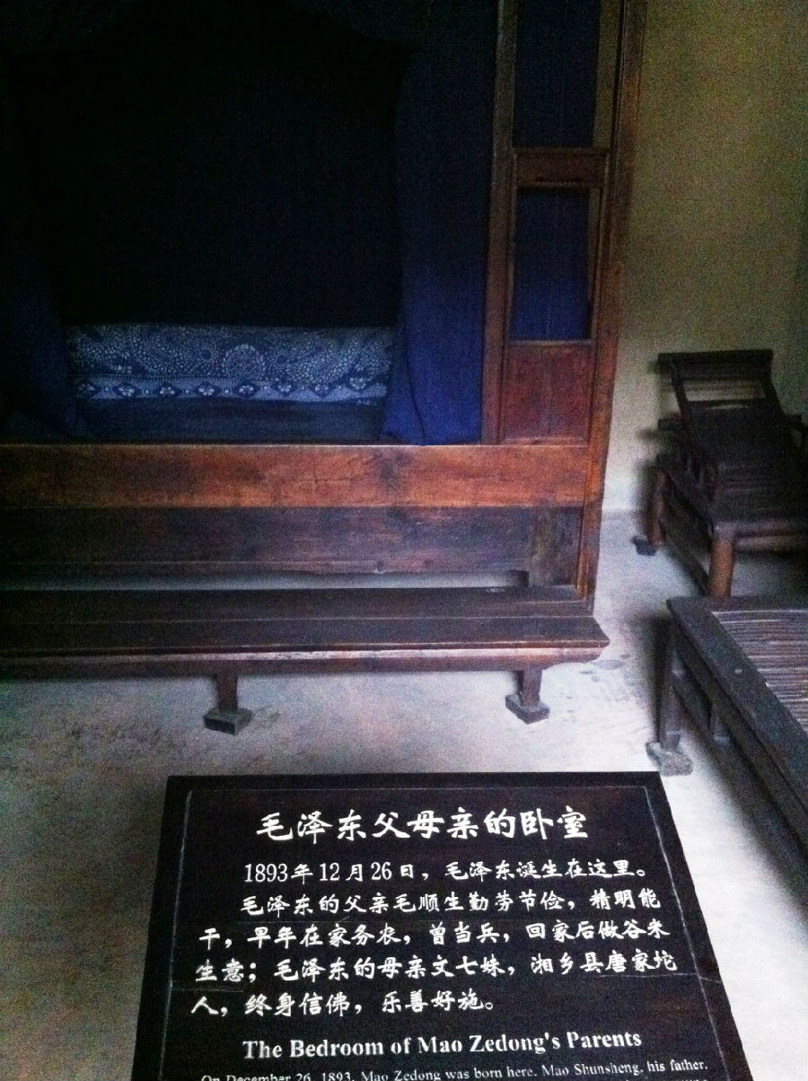 在文氏生下毛泽东的前一天晚上,毛顺生做了一个奇怪的梦,梦见一条飞龙翘首东望,迟迟不肯离去。在1893年12月26日(清光绪十九年十一月十九日)一个漆黑的夜晚,电闪雷鸣,狂风大作,一代伟人诞生了。取名泽东,字咏芝(后改润之)。他们家的头两胎婴儿都在襁褓中夭折了。毛泽东从小接到外婆家,母亲生怕他也不能长大成人,在外婆家的山后有一块非常像人形的巨石,人们称为石观音,他外婆便把他带到石观音面前,拜为干娘,以保佑他茁壮成长,石三伢子由此而来了。