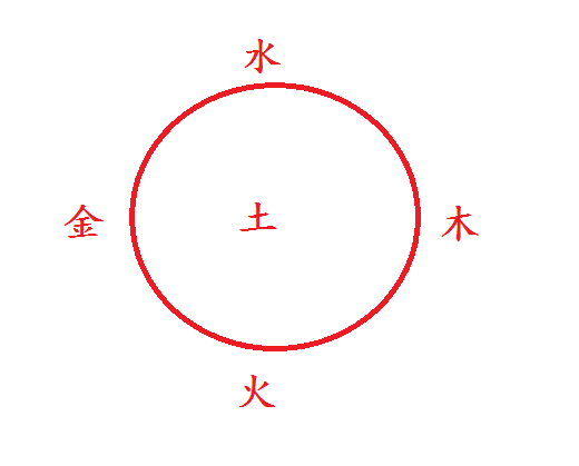 也就是说:金和木是相对的,水和火是相对的,中央是土。