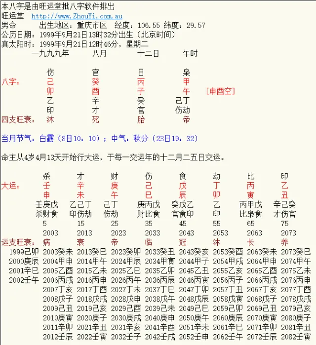 据说他是出生在北京时间下午1点之后的,但是由于出生在重庆,按照真太阳时来排八字,却是出生于午时。故排八字如上。